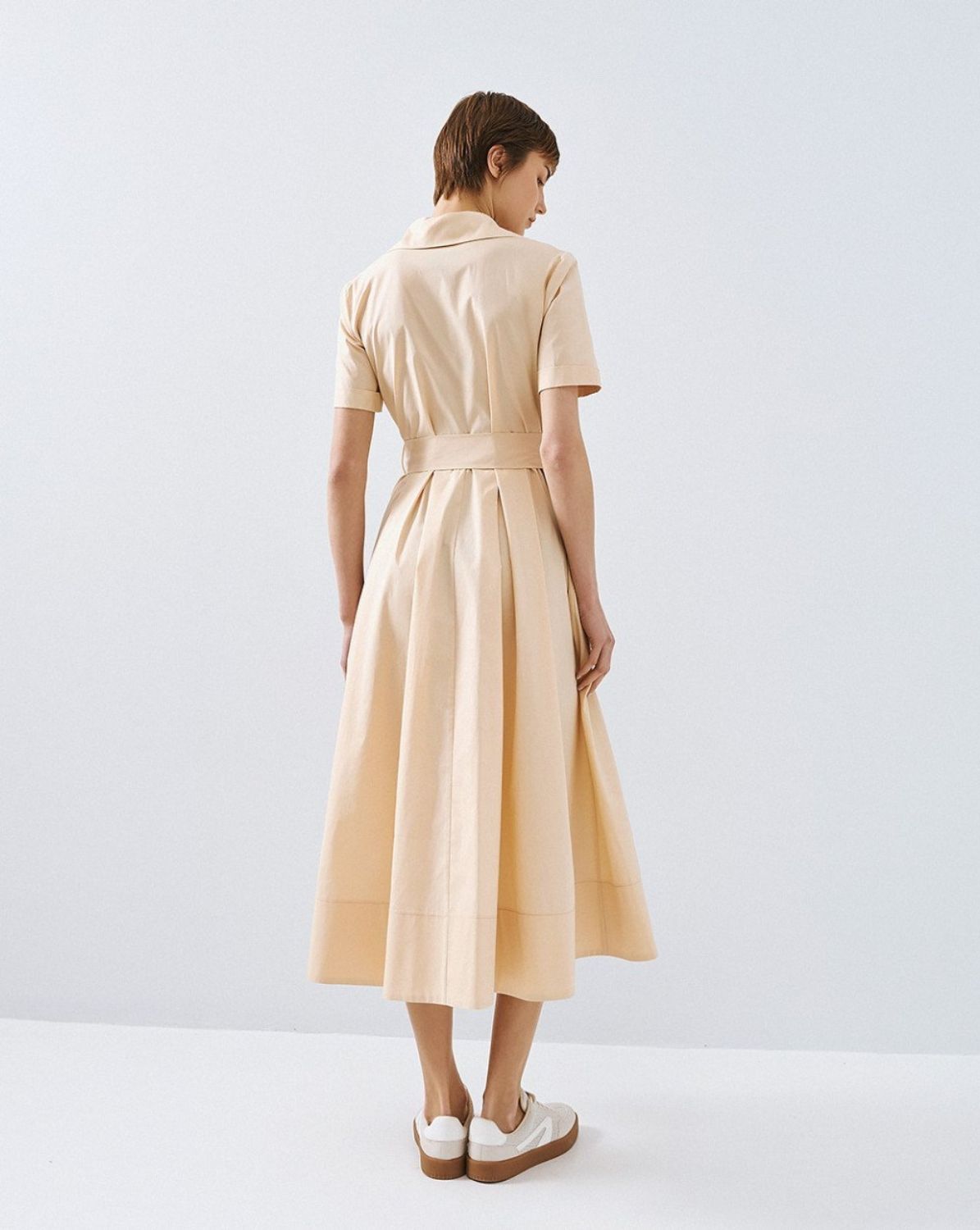 Access Short-Sleeve Shirt Dress BeigeDe Access Short-Sleeve Shirt Dress Beige 63-3318 is een elegante midi jurk met een vrouwelijke, uitlopende pasvorm. Dit beige overhemdjurk model combineert een klassieke kraag en knoopsluiting met een moderne, flatterende A-lijn. De stabiele katoenkwaliteit geeft de jurk structuur en zorgt ervoor dat de plooien in de rok mooi tot hun recht komen. De korte mouwen met omslag, borstzakken met klep en de afneembare strikceintuur benadrukken het tailleaccent en geven de jurk een verfijnde uitstraling. Materiaal: 100% katoen.Styling tip van ons: Draag deze beige midi overhemdjurk met sneakers voor een frisse, dagelijkse look of combineer met sandalen of hakken voor een stijlvolle, zomerse uitstraling. Ook mooi met een blazer voor een meer geklede gelegenheid.Shop online of kom langs in onze winkel in Venlo voor persoonlijk advies. LDHMODA: 02470863-3318