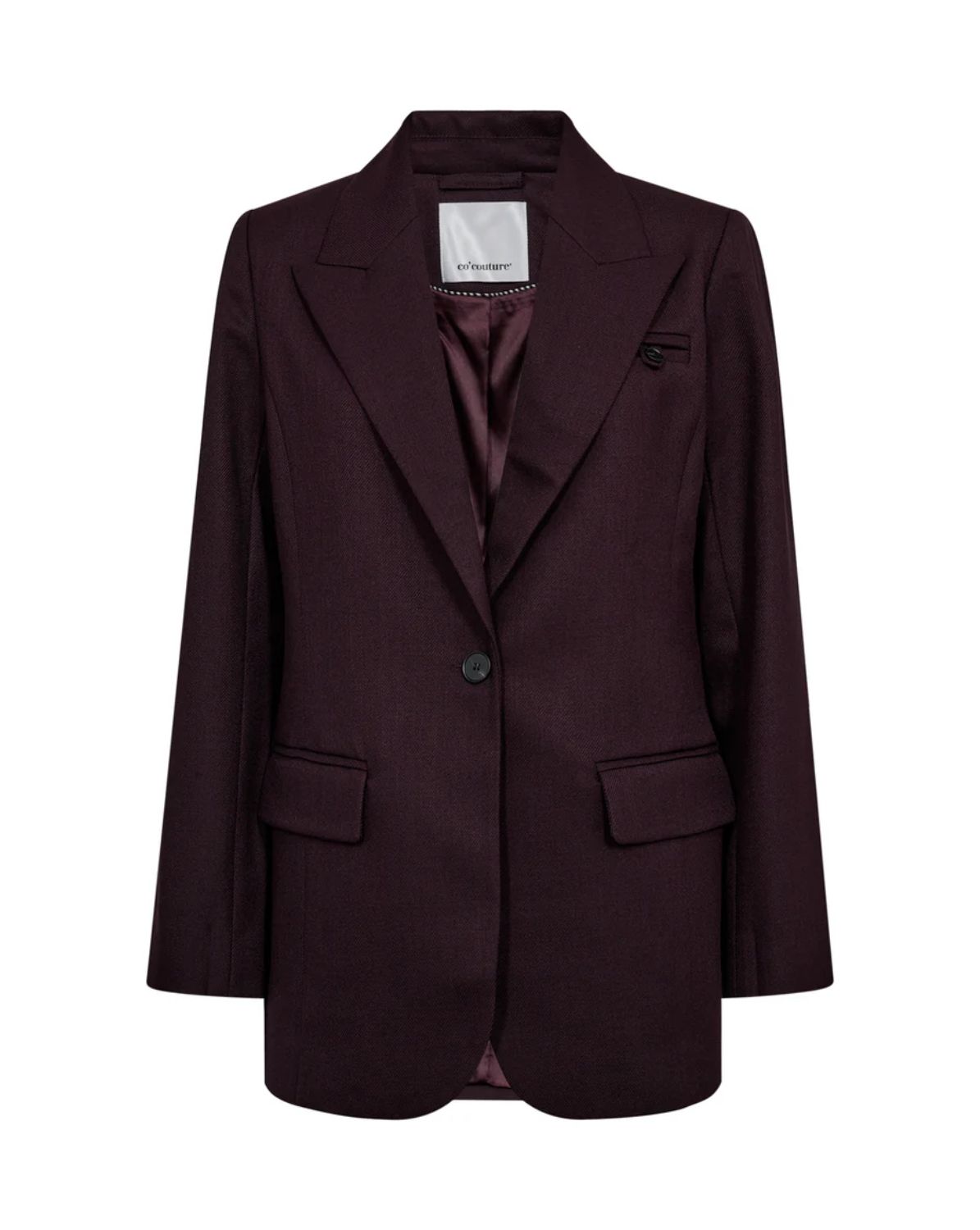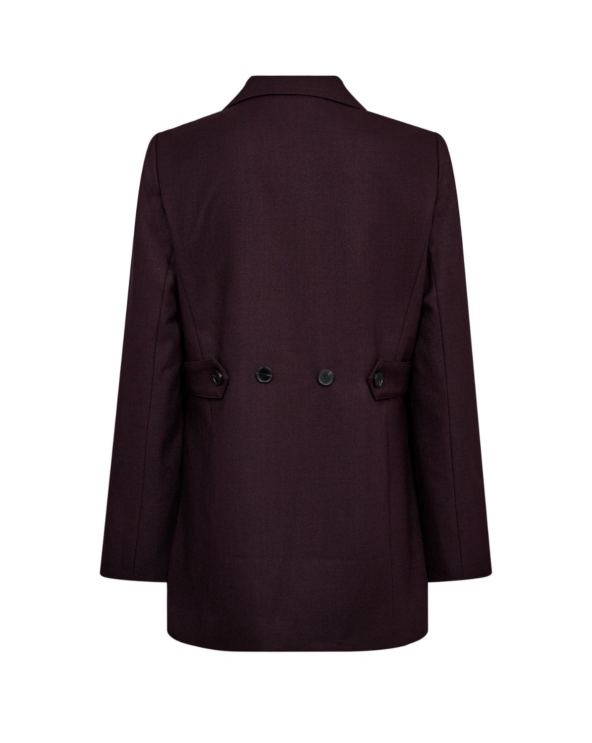 Co'Couture Almira Blazer PlumDe Co'Couture Almira Blazer in Plum is een moderne klassieker met een verfijnde twist. Deze double-breasted blazer heeft een recht, oversized silhouet en opvallende studs langs de armsgaten, wat zorgt voor een eigentijdse uitstraling. De blazer is volledig gevoerd voor optimaal draagcomfort en heeft praktische klepzakken aan de voorkant. Dankzij de diepe pruimkleur straalt dit item kracht en elegantie uit — perfect voor zowel zakelijke als feestelijke gelegenheden.Materiaal: 76% polyester, 18% viscose, 6% elastaan.Voering: 95% polyester, 5% elastaan.Pasvorm: Oversized, recht model met double-breasted sluiting.Sluiting: Knoopsluiting aan de voorkant.Styling tip van ons: Combineer de Almira Blazer met een bijpassende pantalon voor een krachtig ton-sur-ton pak, of draag hem nonchalant over een jeans met een witte blouse voor een chique, alledaagse look.Shop online via www.ldhmoda.nl of kom langs in onze winkel in Venlo voor persoonlijk advies. LDHMODA: 02403630365-Almira-Plum
