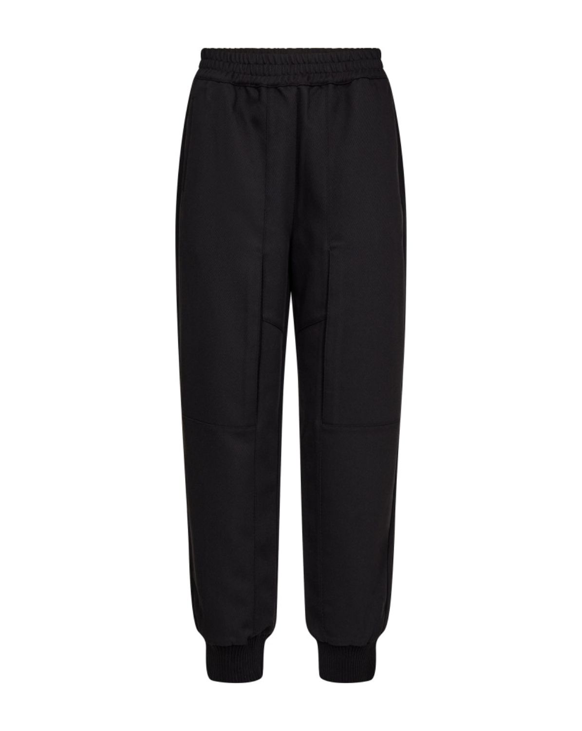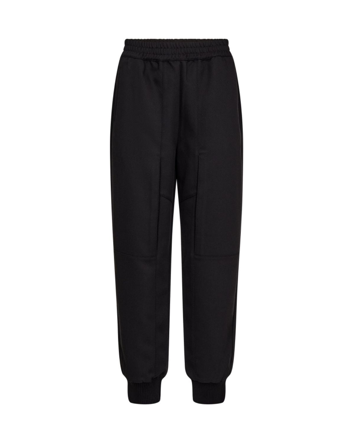 De Co'Couture AlmiraCC Pants in zwart is een moderne, comfortabele broek met een sportieve maar verfijnde uitstraling. Dankzij de elastische tailleband en geribde boorden bij de enkels heeft de broek een ontspannen, pullover-pasvorm die moeiteloos meebeweegt met elke stap. De subtiele stikseldetails geven het ontwerp een eigentijdse en stijlvolle touch. Gemaakt van een zachte, kwalitatieve blend die zorgt voor comfort met een luxe uitstraling.