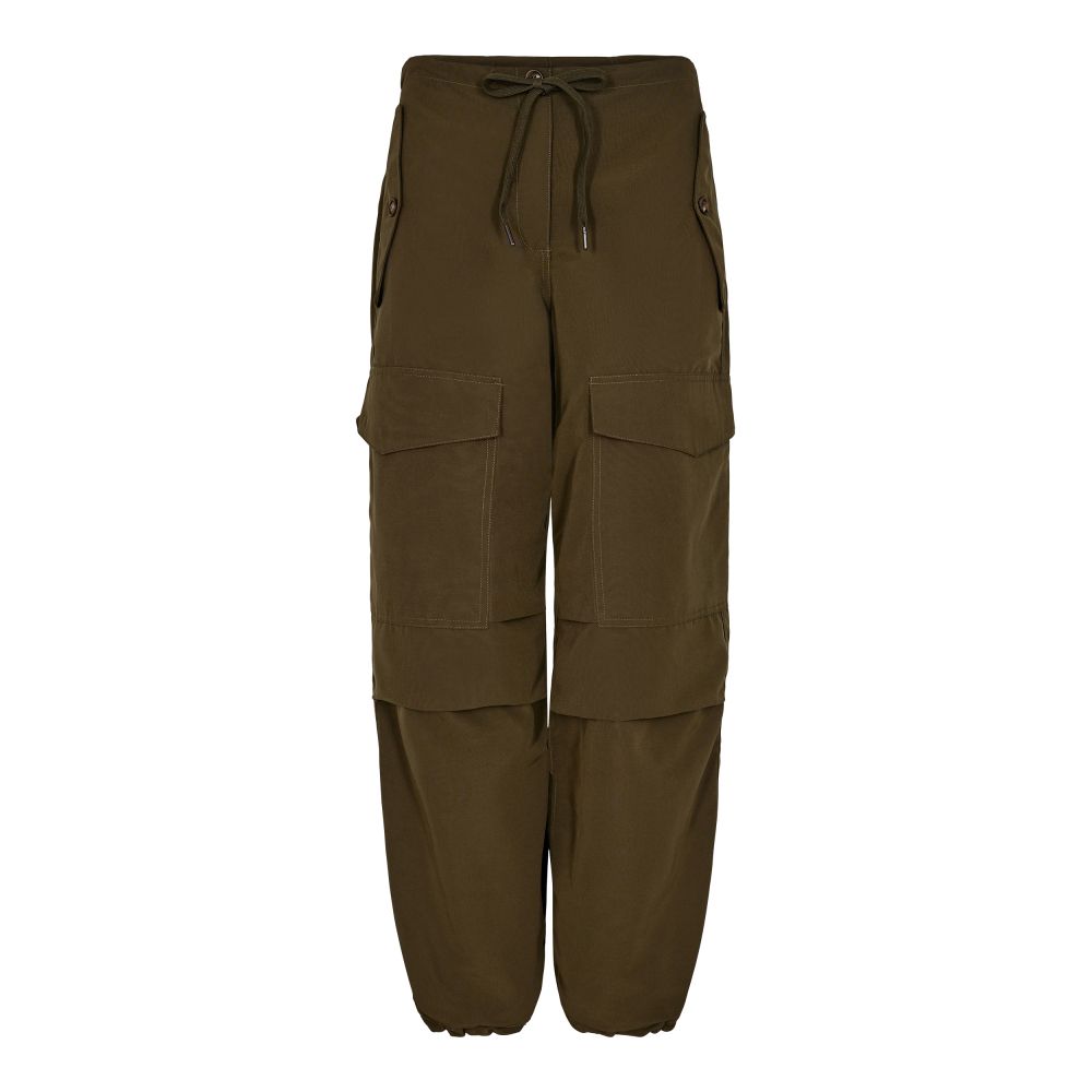 Co'Couture Elba Cargo Pant ArmyCargo baggy broek in een donker groene kleur van Co'couture. Brede en losse pasvorm met grote zakken. De broek heeft een hoge taille.*100% Polyester31049 7555LDH Moda: 020985