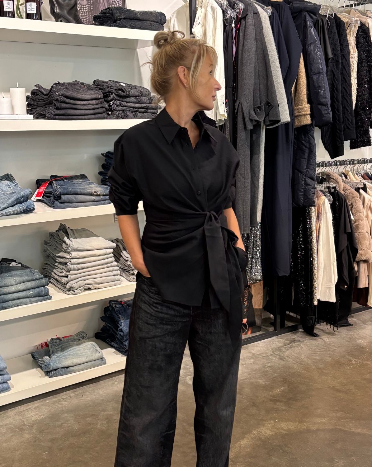 Co'Couture Idina Tie Shirt BlackDe Co'Couture Idina Tie Shirt in Black is een stijlvolle en moderne blouse met een verfijnde uitstraling. De strikceintuur in de taille zorgt voor een elegant vrouwelijk silhouet, terwijl de klassieke kraag en lange mouwen met manchetten de look een tijdloze touch geven. De soepele lyocellmix voelt zacht, luchtig en luxueus aan, waardoor de blouse comfortabel draagt en een chique glans heeft. Perfect voor zowel een zakelijke als een casual gelegenheid.Materiaal: 86% lyocell, 14% polyester.Pasvorm: Losvallend model met strikceintuur in de taille.Sluiting: Knoopsluiting aan de voorzijde.Styling tip van ons: Combineer de Idina Tie Shirt Black met een zwarte pantalon en pumps voor een sophisticated all-black look, of draag hem met een denim jeans en laarzen voor een elegante, alledaagse stijl.Shop online via www.ldhmoda.nl of kom langs in onze winkel in Venlo voor persoonlijk advies. LDHMODA: 024092 Idina Tie Shirt Black