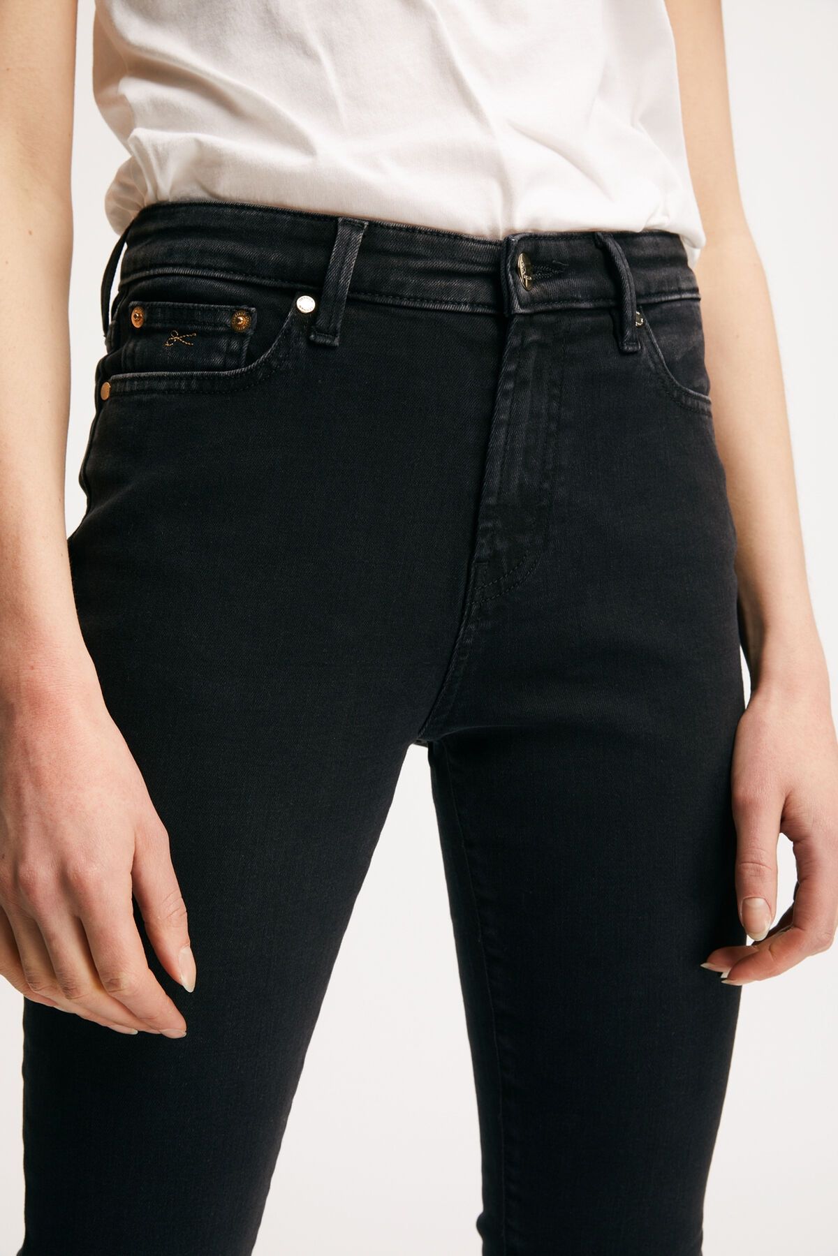 Denham Jeans Needle GABYMB BlackHigh rise skinny jeans van Denham. De jeans heeft een fijne stretch kwaliteit.DESCRIPTIONThese NEEDLE Jeans are cut from a 3 by 1, black stretch denim made with GOTS organic cotton, which contains a natural core rubber developed by Candiani. Known as COREVA, this ensures that the denim is also biodegradable. The leading global textile processing standard for organic fibres, the GOTS certification assures the cotton was grown free from toxic fertilisers, bleaches and harmful chemicals. This style of jeans features a dark-aged wash with a soft stonewashed effect for a gentle contrasting finish. FIT: DENHAM's ultimate high-rise skinny jeans, the NEEDLE, features a tight fit, a '70s inspired high waist and a slightly cropped ankle.SIZE & FITModel is 1.78m (5'10") and wearing size 26/30.97% GOTS Organic Cotton, 3% Recycled ElastaneHigh-Rise, Skinny FitGOTS Biodegradable Denim02-21-10-11-010LDH Moda: 018708