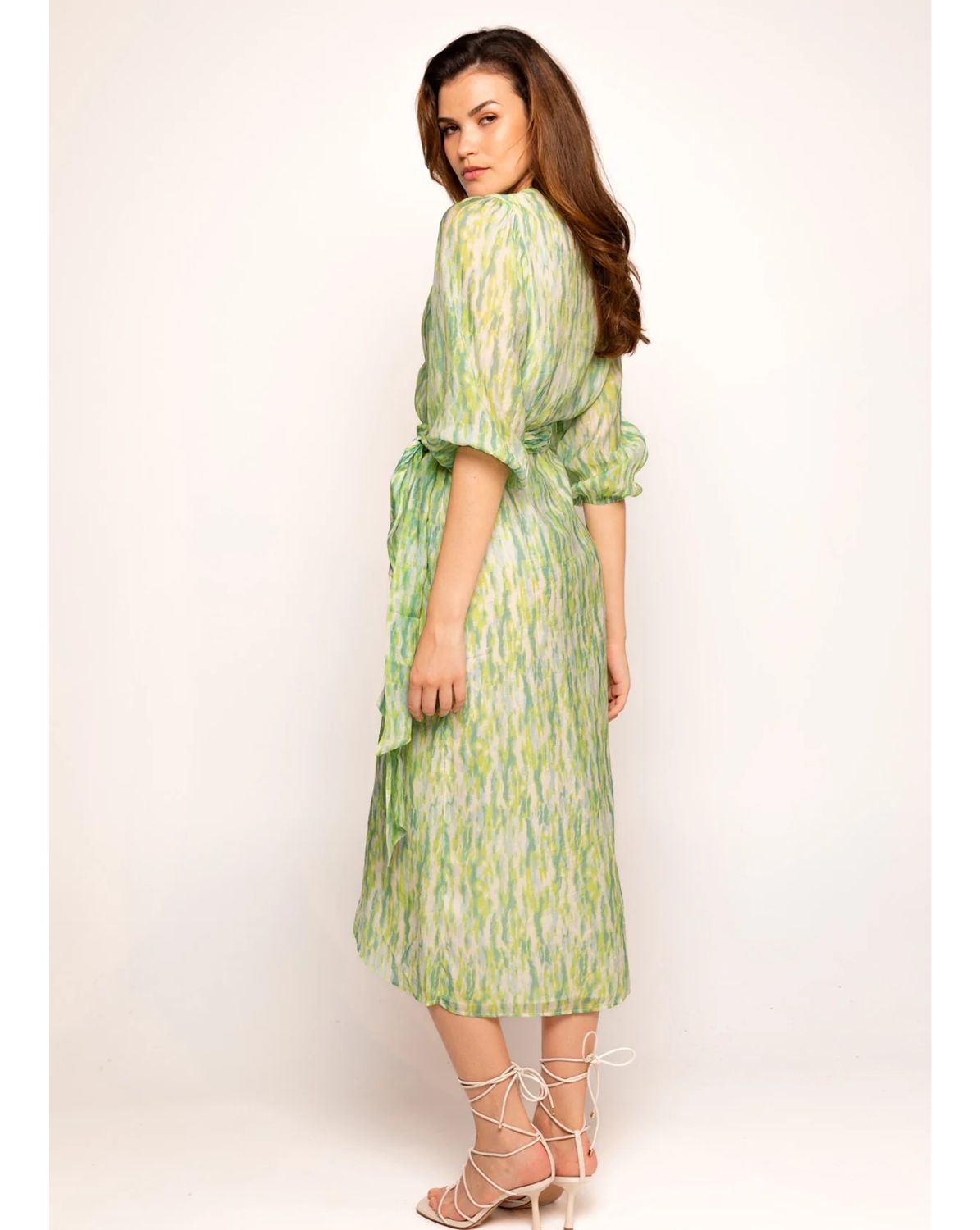 Freebird Blossom Midi-GreenStap vol vertrouwen de dag tegemoet in onze prachtige Blossom Midi Dress Abstract Green, afkomstig van het stijlvolle merk Freebird. Deze lichtgroene top met een unieke abstracte print is een ware eyecatcher die jouw stijl naar nieuwe hoogten tilt. Met een elegante V-hals en speelse korte mouwen voorzien van een charmante ruffle, straal je moeiteloos elegantie uit, of je nu op kantoor bent of een avondje uitgaat.De veelzijdigheid van deze jurk kent geen grenzen. Draag hem met vertrouwen naar een zakelijke bijeenkomst of geef jezelf een chique uitstraling voor een avondje uit. De combinatie van 70% katoen en 30% polyamide zorgt voor een comfortabele pasvorm die de hele dag lang meegaat, zonder concessies te doen aan stijl.Onze modellen laten zien hoe veelzijdig deze jurk is: het eerste model, staand op een indrukwekkende 178 cm, draagt maat S, terwijl het tweede model met een hoogte van 170 cm ook maat S draagt. Dit benadrukt de perfecte pasvorm en het flatterende silhouet van de Blossom Midi Dress Abstract Green.Mis deze kans niet om je garderobe te verrijken met deze prachtige creatie. Ontdek hem nu bij ldhmoda en maak een statement waar je ook gaat!ldhmoda: 021700