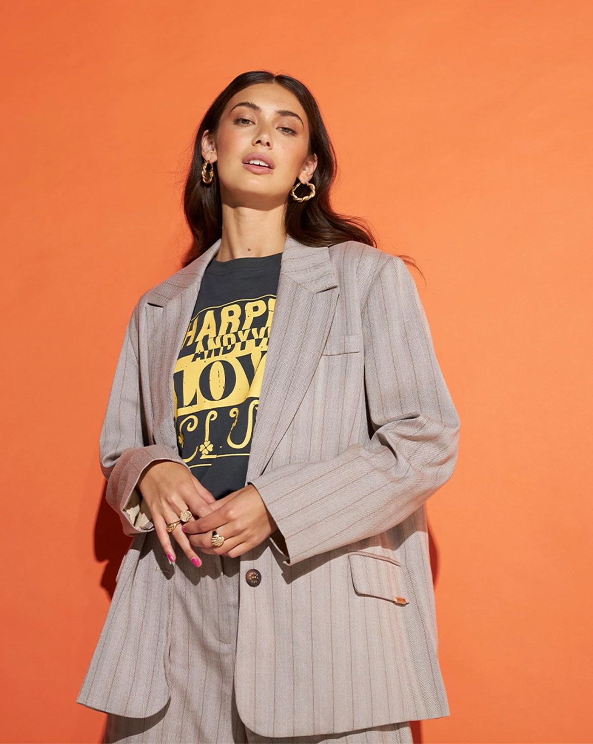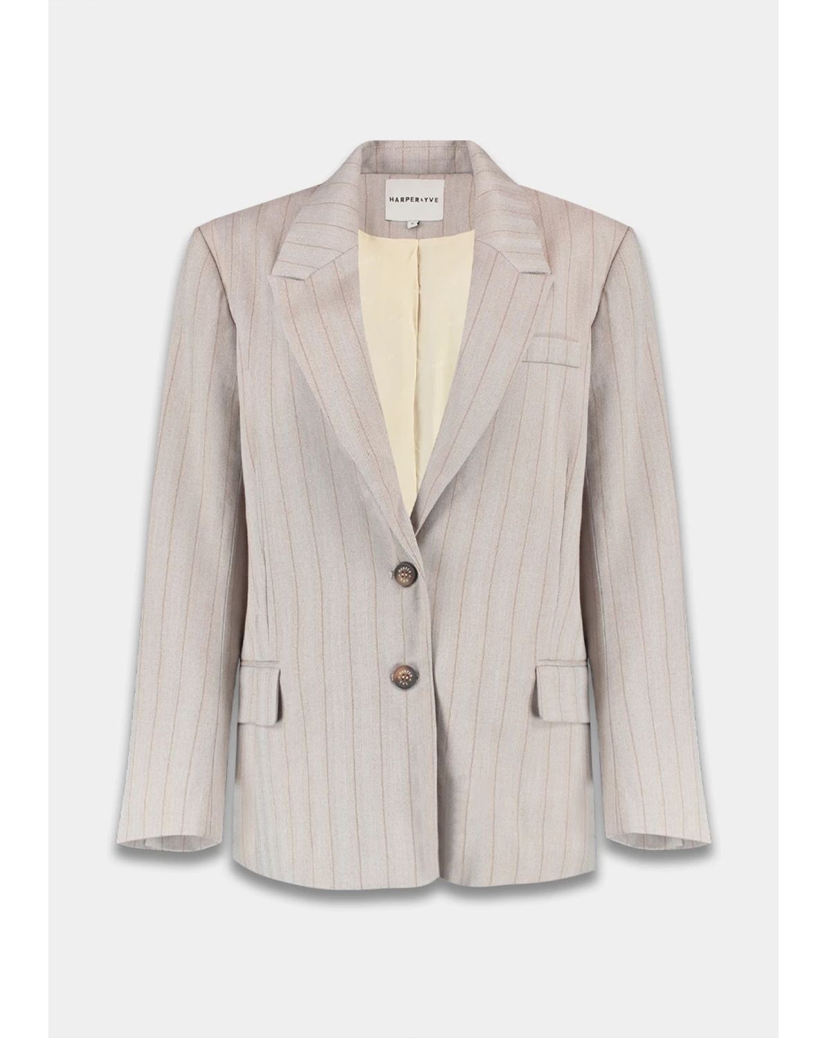 Harper and Yve Anna blazer Schitter in stijl met de ANNA blazer van Harper and Yve! Ontdek jouw perfecte look met de ANNA blazer, jouw nieuwste favoriet in de modewereld. Deze tijdloze blazer met een eigentijdse twist heeft een bruin krijtstreepje dat net dat beetje extra toevoegt aan je outfit. De blazer heeft een oversized pasvorm en een omgekeerde kraag, wat zorgt voor een moeiteloos en tegelijkertijd stijlvol voorkomen. De dubbele knoopsluiting aan de voorkant voegt een vleugje elegantie toe, terwijl de klepzakken en het nepborstzakje de blazer een klassiek accent geven.Ben je op zoek naar de perfecte outfit? Combineer de ANNA blazer met de ANNA pantalon voor een complete en stijlvolle look. Maak een statement met de ANNA blazer en straal zelfverzekerdheid uit bij elke gelegenheid!Ons model is 1.76 en draagt maat S. Materiaal: 75% polyester, 20% rayon en 5% spandex. Voering: 100% polyester. LDHMODA: 020804