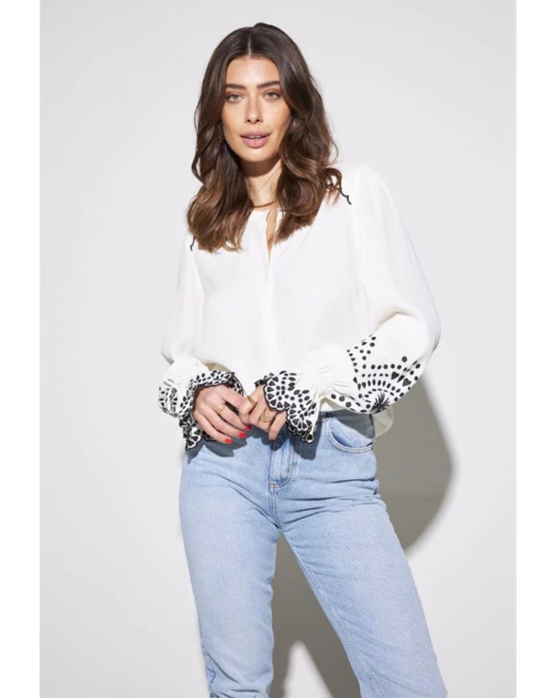Harper & Yve Hayli--LSDe HAYLI BLOUSE heeft ballonmouwen met elastische uitlopende manchetten voorzien strikdetail en open borduurwerk. De blouse sluit d.m.v. een blinde knoopsluiting.Ons model is 174 cm en draagt maat S.Product code068947Artikelnummer leverancierSS23P603Kleur:Wol wit 11ldhmoda:020593