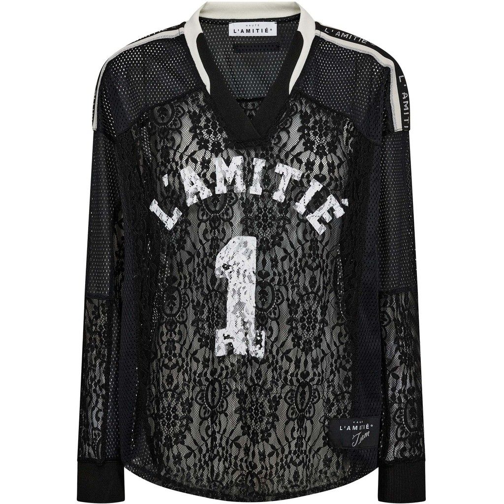 HAUTE L'AMITIÉLace Football V- Blouse HL10468Zwarte blouse van Haute L'Amitié met kantpatroon en pailletten. De blouse heeft een V-hals en een losse pasvorm met lange mouwen. 100% polyester V-hals Losse pasvorm Lange mouwen Pailletten en kantModel: HL10468Materiaal: 100% PolyesterKleur: Zwart (Zwart)Patroon: Gestreept, Met printDetails: Pailletten, KantPasvorm: Losse pasvormLDHMODA;024631HL10468