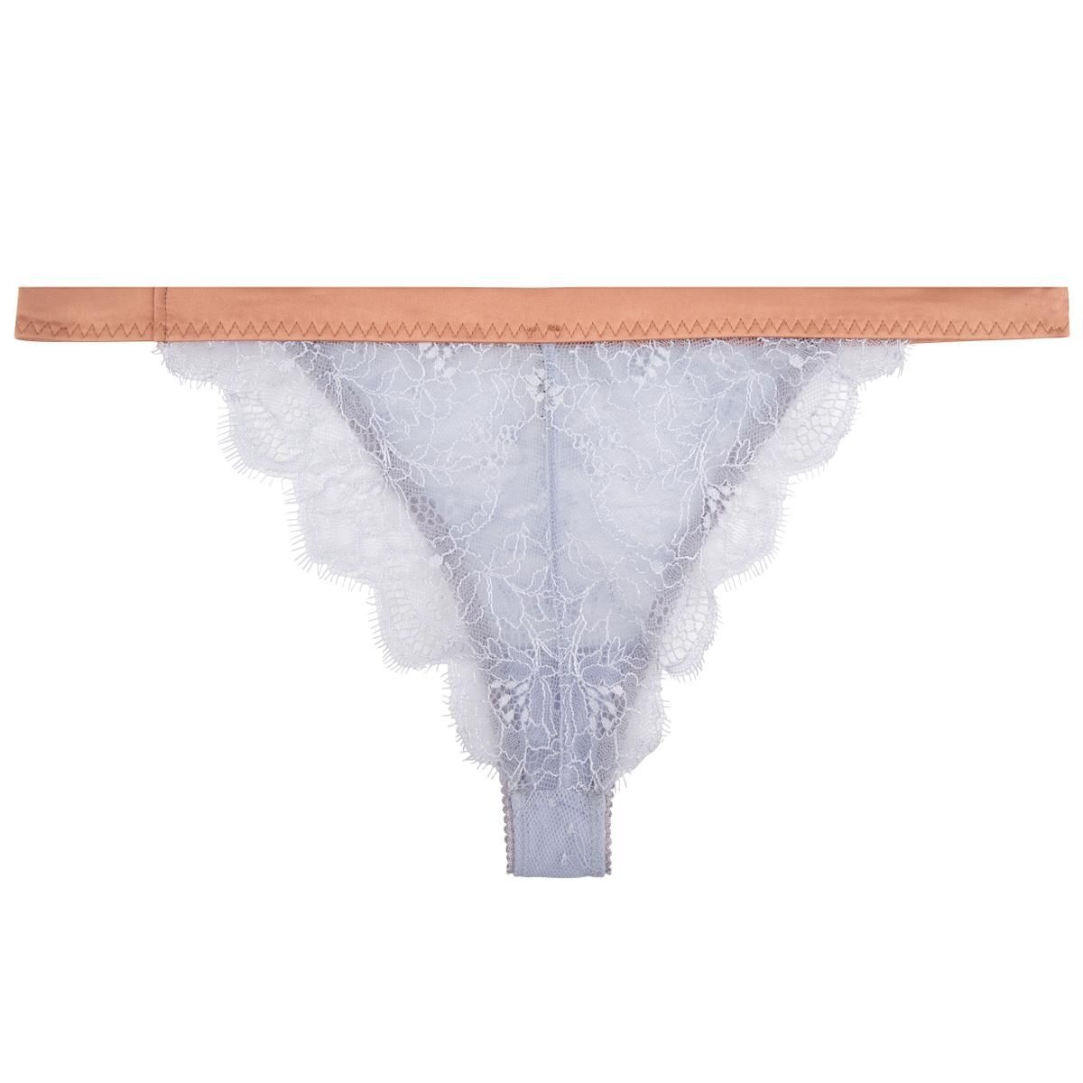Love Stories Linda Briefs BlueTanga slip in een mooie lila blauwe kleur van Love Stories. Het slipje is helemaal van kant.- Cheeky, tanga style briefs in ice blue- Cut from soft, stretch lace with a floral pattern- The Brazilian back in ice blue is crafted from eyelash lace with a floral pattern- Finished with a scalloped, flutter trim- It has a slim, elastic waistband in soft pink- Sits low on the hip- 100% cotton gusset liner for breathability and comfort49% Polyamide, 42% Polyamide (recycled), 9% ElastaneL2192898627LDH Moda: 018358